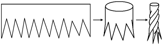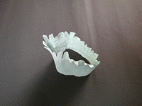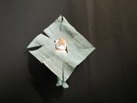 また、全体を数回折りたたんで、下図右のようにねじっておくと表情が出て可愛くなる。