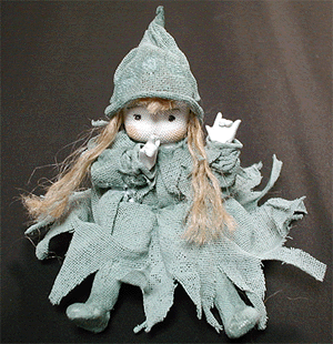 とんがり帽子のように先をねじり、乾いてから帽子の形を整える。