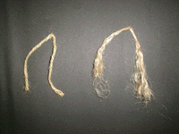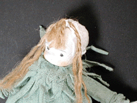 - 麻ヒモの髪の毛を、前髪・横髪としてボンドで着ける。