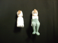 - 安定するように座らせ、手のポーズで可愛い表情をつけ、ボンドで固定して 完成!!。