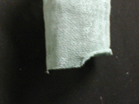 - えりは両サイドをジグザグに切り、少しずらして二つ折りにして、首の周りにギャザーを寄せボンドで留める。